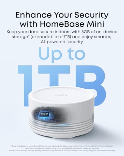 Subscription-Free Security, On-Device Storage: On-device storage ensures anytime access to all your events via the eufy app. Store footage on HomeBase Mini (up to 1TB with microSD card, not included) or directly on your camera (up to 256GB with microSD card, at least 32GB recommended, not included).
