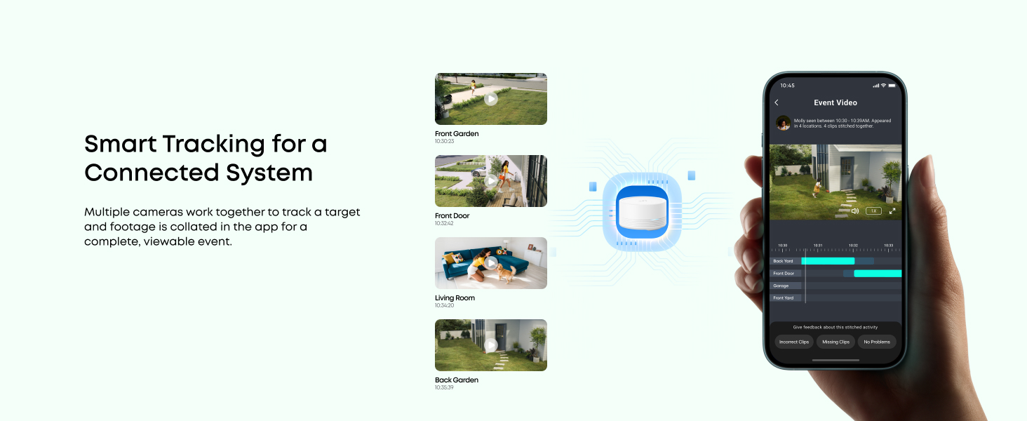 Cross-Camera Tracking: Advanced AI algorithms enable your system to work together more intelligently, automatically tracking movement between cameras and collating footage for complete events viewable in the app.