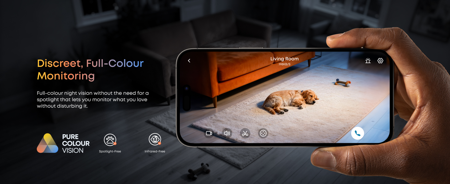 Lifelike Footage, Even at Night: High-quality lens with a larger aperture and upgraded sensor ensures you enjoy vivid, lifelike images in crisp detail. PureColour Vision delivers clear nighttime monitoring in full colour without the need for spotlights or infrared.