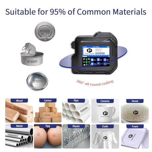 Eurannit E98 MINI Handheld Inkjet Printer – Large 2.8″ Touchscreen & Fully Enclosed Design, 12.7mm Nozzle with Removable Guide Wheel for Text, QR, Barcode on Narrow & Uneven Surfaces