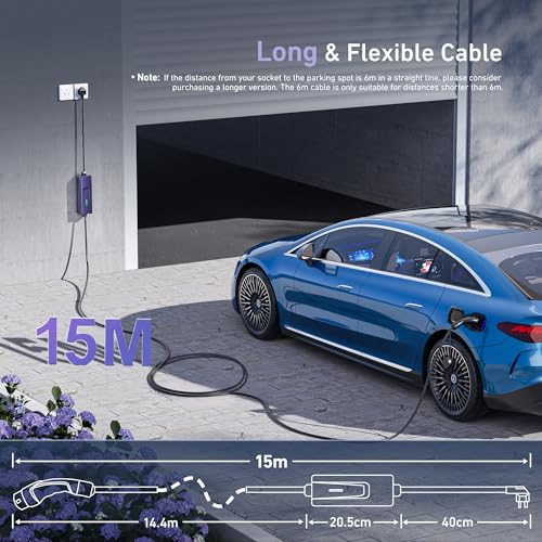 【Wide Compatibility + 2-in-1 Charging Cable】 This 15-meter EV charger cable type 2 to 3 pin plug works with most European and UK electric vehicles. The generous length and included storage bag make it an ideal portable EV charger for home charging, road trips, or emergency backup – truly one cable for all scenarios.Our EV charger is compatible with electric and hybrid vehicles with type 2 (7 Pins) or CCS 2 (7 Pins + 2 Pins) connector.