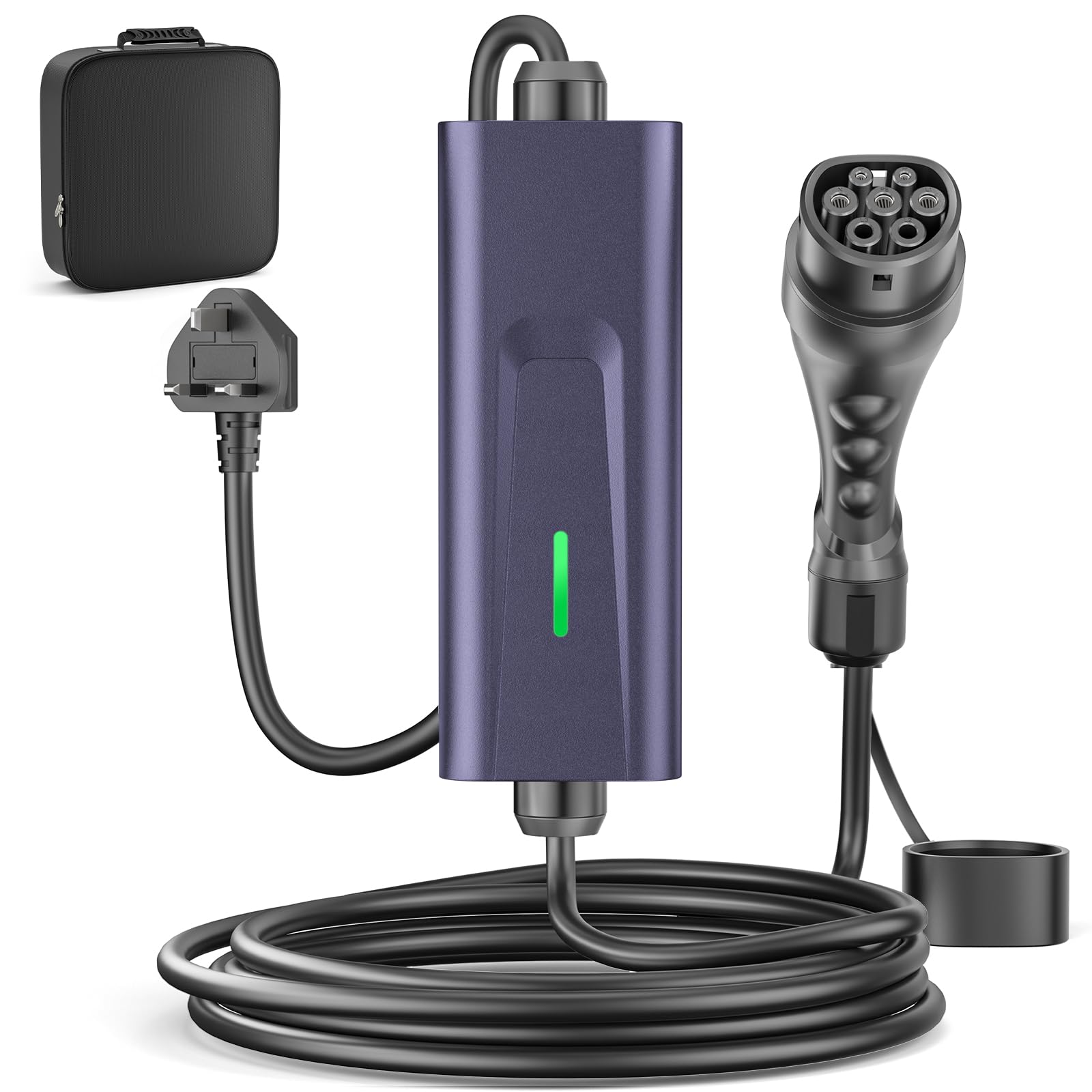 【Certified Safe with Multi-Protection System】 This safety-certified EV charger comes with CE, UKCA and ROHS certifications, featuring complete protection against over-current, voltage fluctuations, and overheating. With IP65 waterproof rating (when connected) and operation from -25°C to 50°C, this 3 pin EV charger type 2 ensures worry-free charging in all conditions.
