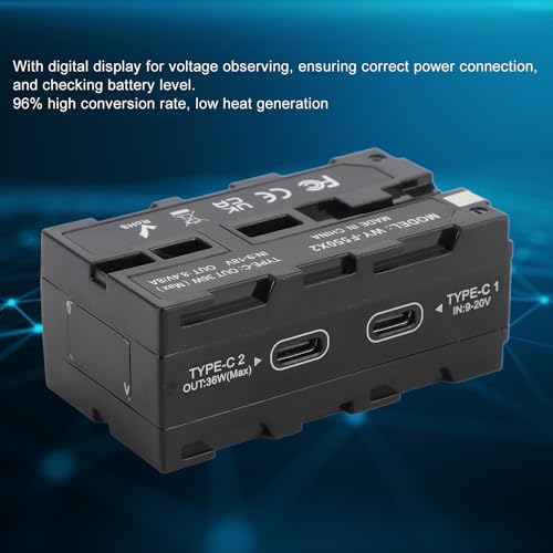 - Digital Display: Equipped with digital voltage display, this dual sided for NP F dummy battery adapter allows users to ensure if power connection is correct and help you check battery level.