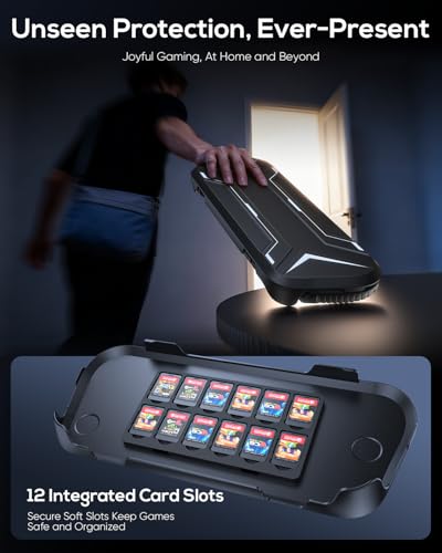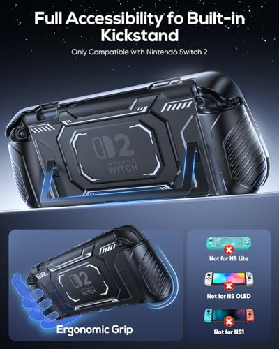 - 【Dual-Layer Full Protection & Multifunctional Front Cover】The flexible, shock-absorbing TPU inner frame and the sturdy, scratch-resistant PC hard shell provide dual protection for your Switch 2 console. This dual-material structure offers military-grade defense, effectively guarding against daily bumps, accidental drops, and scratches. The front cover features 12 built-in silicone game card slots—no more worrying about how to carry your favorite games cards.