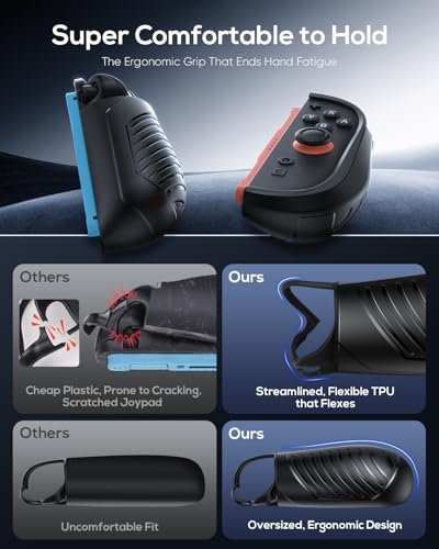 - 【Enhanced Ergonomic Grip】Say goodbye to hand fatigue. The switch 2 hard case is contoured with a thickened, non-slip grip that fits naturally in your hands. This ergonomic design provides superior comfort and control, making those long gaming sessions much more enjoyable. Crafted from soft yet resilient TPU material, the grip is durable and easy to remove without breaking or scratching your Joypads.