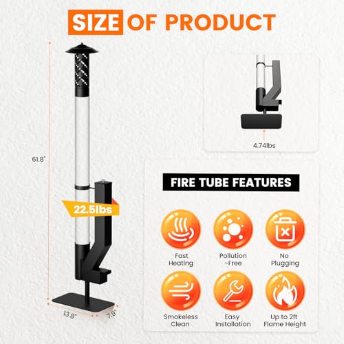 Durable & Heat-Resistant Build: Built with an 800mm high-borosilicate glass tube resistant to temperatures up to 1200°C (2192°F), it stays clear and crack-free for vibrant flame viewing. The 4.8 lb powder-coated carbon steel base resists rust, scratches, and fading for year-round durability