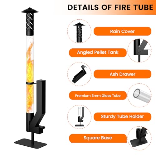 Sleek & Versatile Outdoor Design: This clean-burning wood pellet fire pit combines efficient heating with modern style. Its durable glass tube radiates warmth and creates a cozy ambiance, making it the perfect addition to patios, backyards, restaurants, or outdoor dining areas