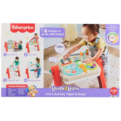 With four ways to play, learn and create that adapt to baby's growth, this electronic learning toy turns into an activity board, activity table, play table, and art easel!