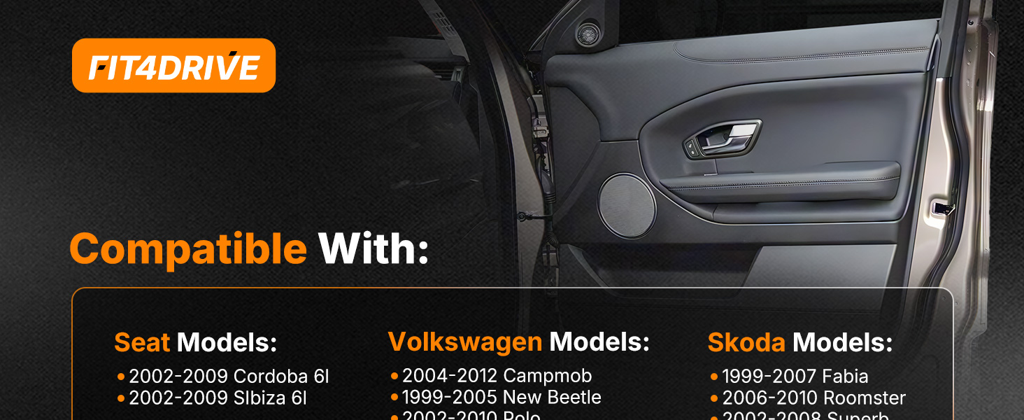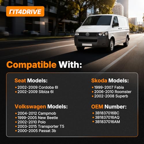 Compatibility: For 2002-2009 SEAT CORDOBA 6L, 2002-2009 SEAT IBIZA 6L. For 1999-2007 SKODA FABIA, 2006-2010 SKODA ROOMSTER, 2002-2008 SKODA SUPERB. For 2004-2012 VOLKSWAGEN Campmob, 1999-2005 VOLKSWAGEN NEW BEETLE, 2002-2010 VOLKSWAGEN POLO, 2003-2015 VOLKSWAGEN TRANSPORTER T5, 2000-2005 VOLKSWAGEN PASSAT 3B.