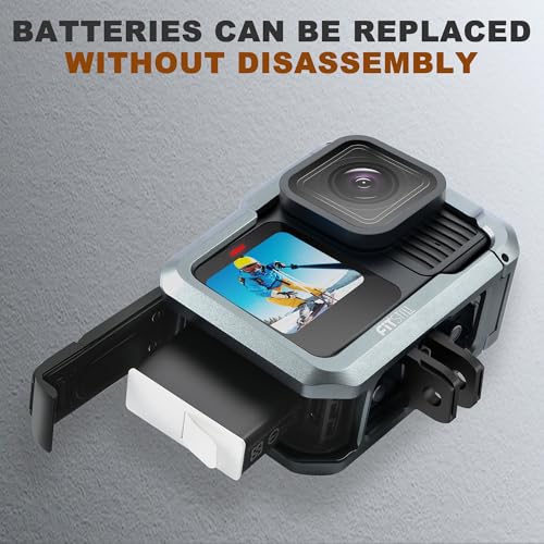 - 【Perfect Fit】The aluminum alloy protective frame is a perfect 1:1 fit for the look and details of your GoPro Hero 13/12/11/10/9 action camera. The buttons, microphone hole, side battery cover, and bottom 1/4" adapter remain accessible and undamaged from drops, while still allowing normal use of the camera, battery, memory card, and tripod.