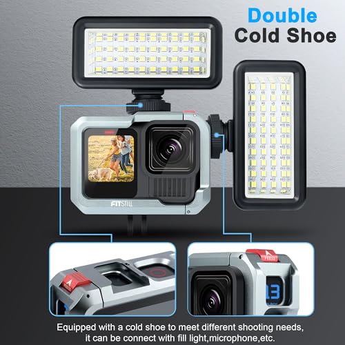FiTSTILL Aluminum Cage Protective Housing for Go Pro Hero 13/12/11/10/9 Black with Cold Shoe Adapter, Base & Screws Go Pro Hero 13/12/11/10/9 Accessories