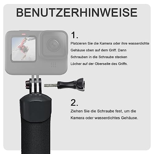 - Premium swimming handle: The floating body of the handle keeps the camera and accessories on the water surface and prevents drowning. Grip: High quality non-slip foam grip【Packing list】 1x waterproof case; 12x anti-fog inserts; 1x submersible swimming grip monopod; 1x screw; 1x adapter dock.fe ensure a firm grip and extra comfort. The handle will not become sticky like a rubber grip due to sunlight.