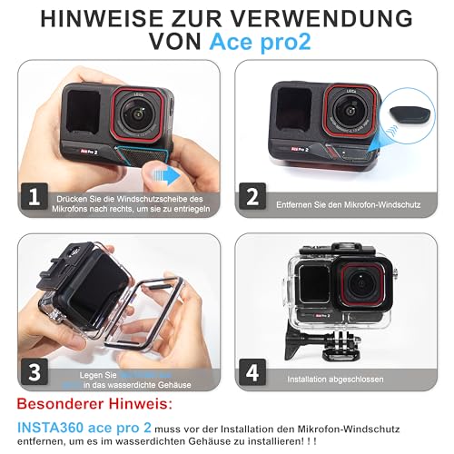 - Special diving housing for INSTA 360 ace pro 2/ace pro: This waterproof case has been specially designed for INSTA 360 ace pro 2/ace pro to provide maximum protection from scratches, bumps and dust. Note: does not fit the Insta 360 ace. !