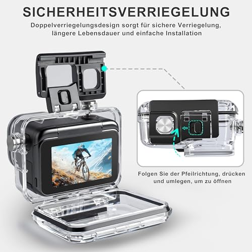 - Diving depth 50 metres/164 ft: even at a depth of 50 metres, you can take bright and vivid pictures with the waterproof housing. The lens section is made of highly permeable steel glass, which can capture wonderful moments even at depths of 50 metres. This waterproof case made of high quality PMMA material is waterproof and dustproof, protects your camera during extreme sports such as diving, surfing and skiing, and provides a high definition picture experience.