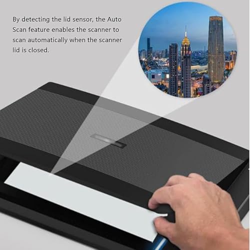 - Automatic Scanning for Enhanced Efficiency: Engineered with an automatic scanning feature, this scanner starts the scanning process immediately upon closing the cover, making continuous scanning seamless. The energy-efficient LED light source ensures no warm-up time, providing quick and convenient operation.