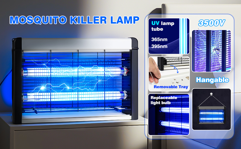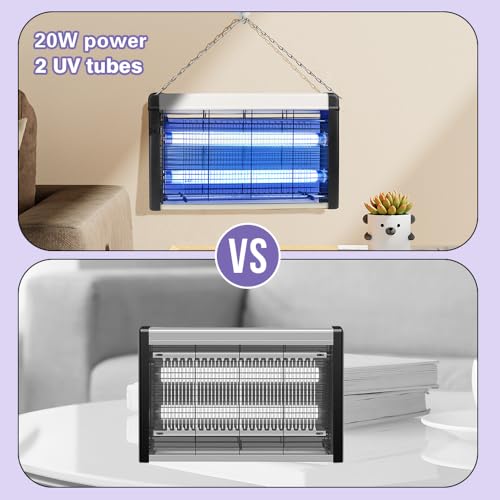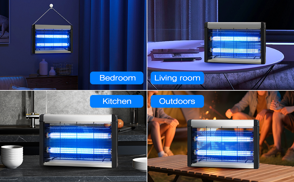 Flexible Use and Easy-to-Clean :Simply plug it in and start eliminate annoying mosquitoes.This bug zapper is equipped with a hanging chain, electric fly killers for the home allowing it to be hung on a wall or placed on a flat surface. Both methods can be used flexibly to meet different needs and effectively attract and electrocute mosquitoes.Hygienic for effortless maintenance,the bottom tray can be easily disassembled and cleaned , keeping the equipment running efficiently for a long time