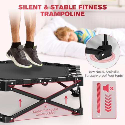 Foldable Trampoline, Mini Trampoline for Kids, Three Adjustable Heights, Anti-Slip T-Handle, Noise-Free, 150kg, Suitable for Children/Adults, Kids Exercise Rebounde
