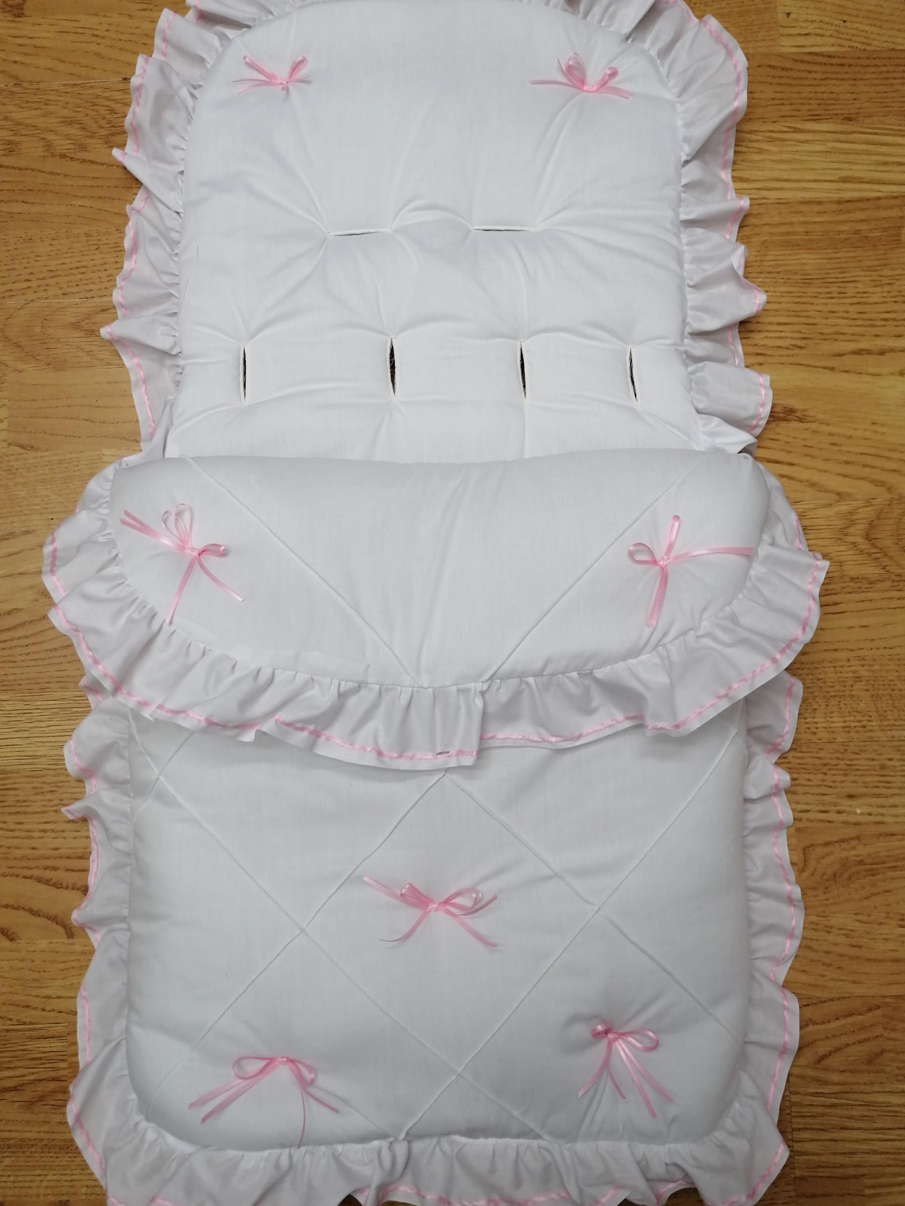 Footmuff Cosytoes Universal fit pram Set Buggy Liner, Colour White with Pink Pushchair Stroller Buggy Accessory