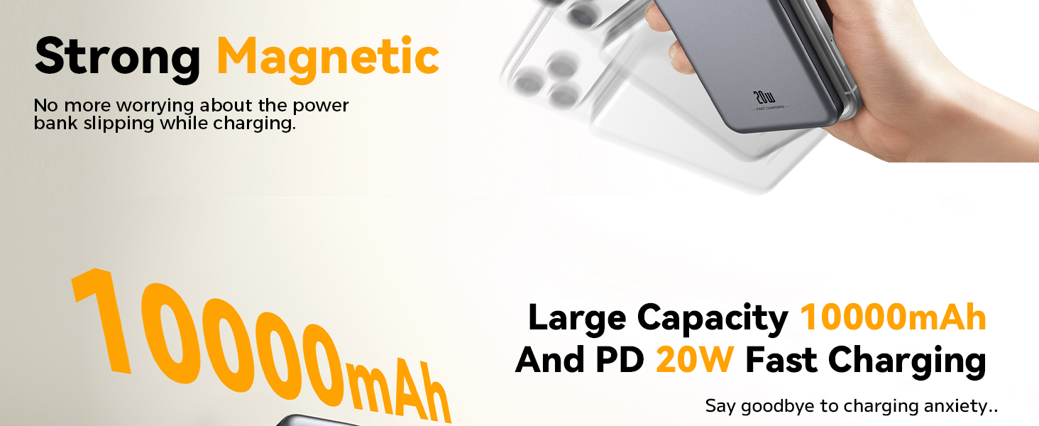 - Fast Charging with Dual Ports – This power bank fast charging portable charger is designed for MagSafe wireless charging and enhanced with MagSafe-compatible magnetic use, supporting up to 15W wireless charging and up to 20W wired charging via USB-A and USB-C ports. Charge two devices at the same time with PD and QC compatibility, delivering fast, stable, and efficient power for phones, tablets, and essential accessories. This high-performance power bank is perfect for daily use, travel, and emergencies.