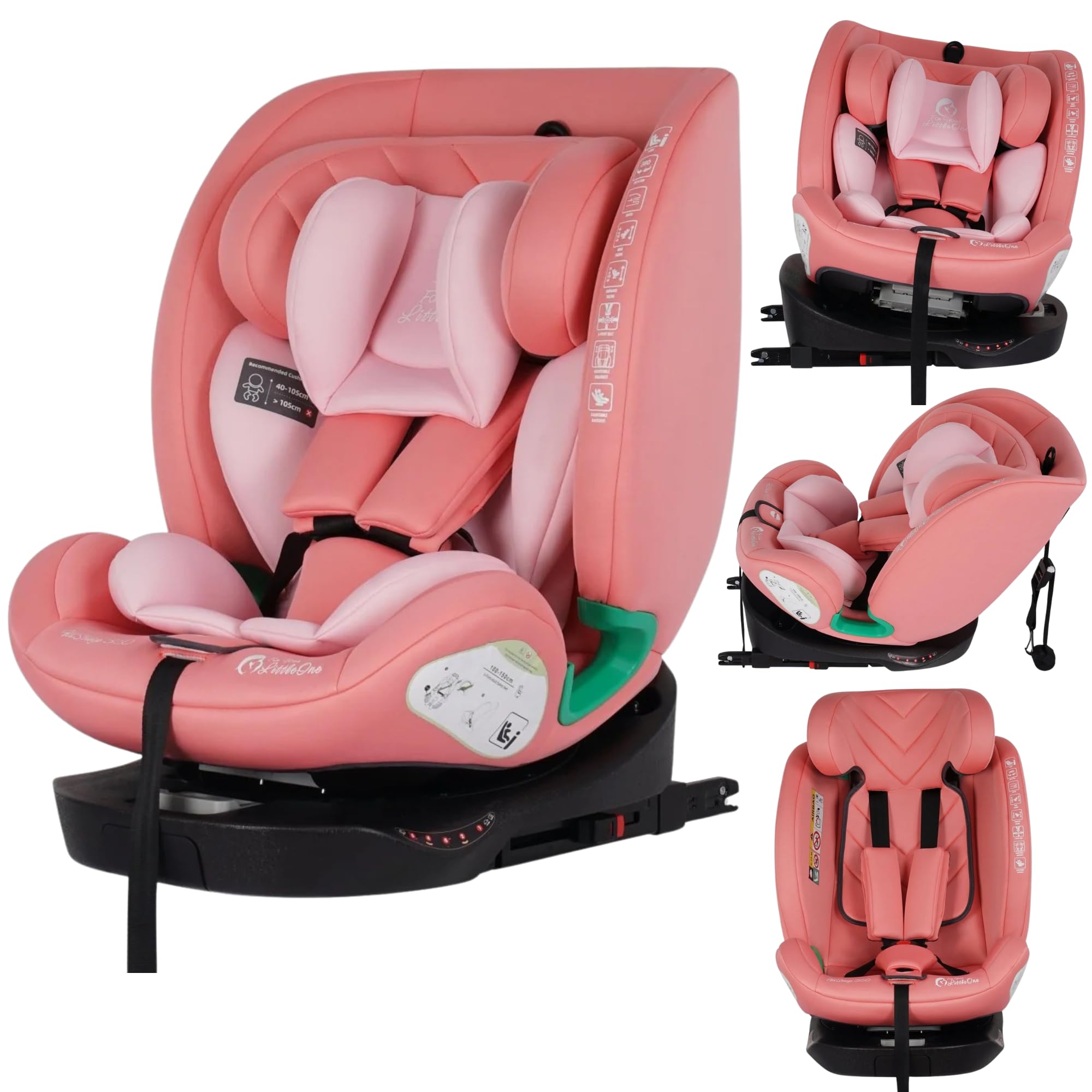 For Your Little One AllStage 360 Group 0/1/2/3 Car Seat, ISOFIX i-Size, 360-Degree Rotation, Rear and Forward-Facing, Birth to 12 Years, 5-Point Harness, 7 Height Positions (Blush Rose)