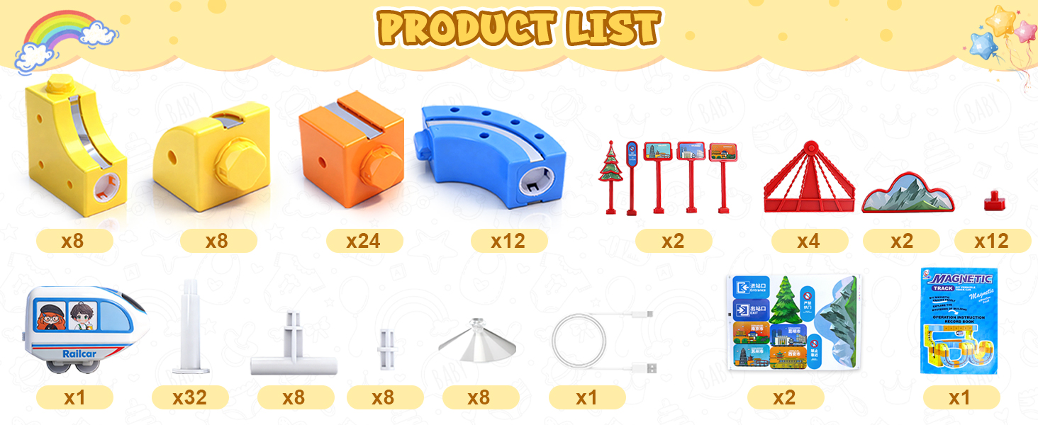 【STEM Skill-Building Play Experience – Magnetic Train Set】Magnetic track toys combining fun and education, the unique track design enhances spatial reasoning, problem-solving skills, and creativity. Through hands-on building and problem-solving activities, it cultivates essential STEM abilities (Science, Technology, Engineering, Mathematics) , sparking curiosity and creative thinking.
