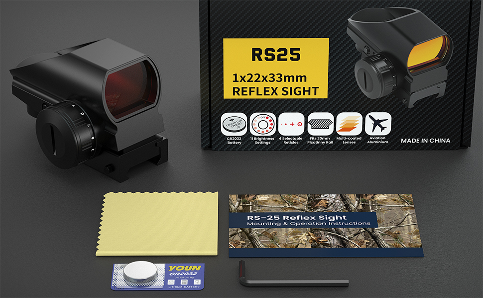 【Complete Set and Secure Installation】Fyland Reflex Sight is extremely easy to install and can be removed in seconds using the included wrench. The box contains all necessary accessories. The compact design allow easy installation on Picatinny rails without affecting other installed accessories.