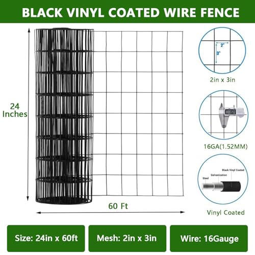 - Multi-Purpose Applications:Perfect for chicken coops, pet enclosures, rat prevention, and garden protection. Also works as hardware cloth. This black metal fence roll is versatile.