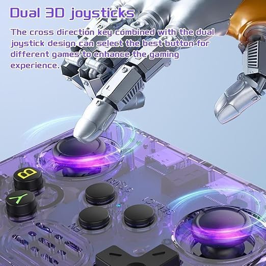 - Comfort-Focused Ergonomic Design: This r36s game console prioritizes comfort,equipped with two 3D joysticks and a cross-shaped D-pad for precise control.As a capable emulator handheld,the r36s game console's back buttons have real springs,providing a responsive, touch feel that enhances gameplay. The ergonomic design of this handheld video game console cuts down on hand fatigue during long play,keeping your emulator handheld sessions comfortable and immersive.
