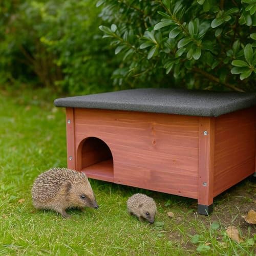 Provide hedgehogs a safe, dry place to nest, rest, and hibernate. Two chambers keep entry and nesting areas separate, while the raised, weatherproof house stays dry and protected. The removable roof makes cleaning simple and helps deter predators. Pre-treated with wildlife-friendly preservative, this durable house fits gardens of all sizes.