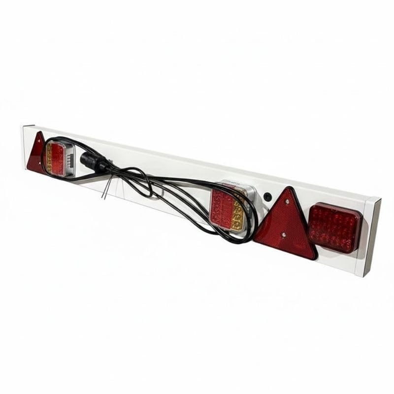 LED 4FT TRAILER LIGHT BOARD WITH 5 METERS CABLE CARAVAN CAR TOURING TRAVEL TOWING This trailer board provides signals on trailer or caravan during the towing process. Comes with 2 lamps and 2 triangle reflectors and a Fog Light E-Mark Approved Cable Each light functions has 4 functions: side turn signal trail indicator licrense plate illlumination brake light. 5 Metre Cable 12 Volt 7 Pin Plug