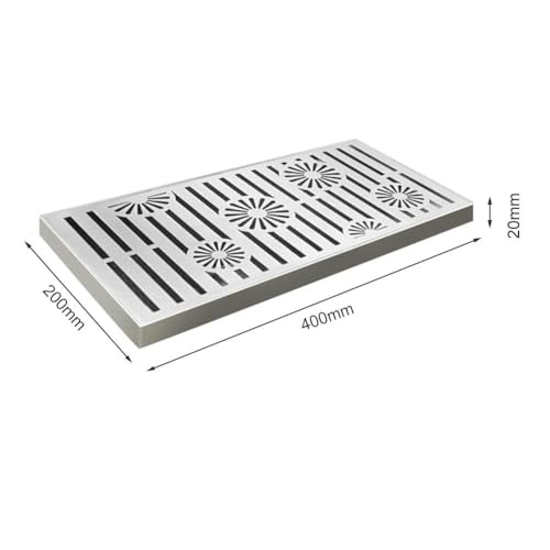 Gettimore Stainless Steel Drain Grate 200x300x20mm and 200x400x20mm – Silver Floor Drain Cover with Fast-Flow Perforated Design for Patios, Gardens, Sidewalks – Slip-Resistant Brushed Finish