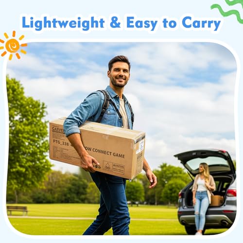 【Giant 4 Row Game Easy Assembly & Portability】 Jumbo Games No tools required! Set up in just minutes. The lightweight design (approx. 10-14 lbs) and portable storage bag make it ideal for indoor and outdoor use—perfect for parties, picnics, and family game nights.
