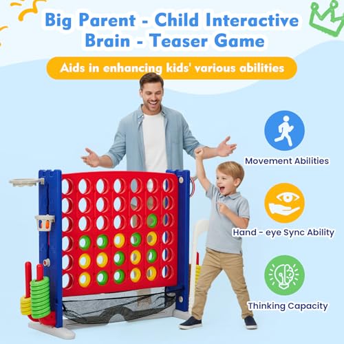 Giant 4 Connect in a Row Game, Jumbo Connect 4 Outdoor Game With Adjustable Height(36-48 In) and 42 Jumbo Rings Quick Release Slide,Yard Games For Kids And Adults, Ideal For Holiday Party Family Game