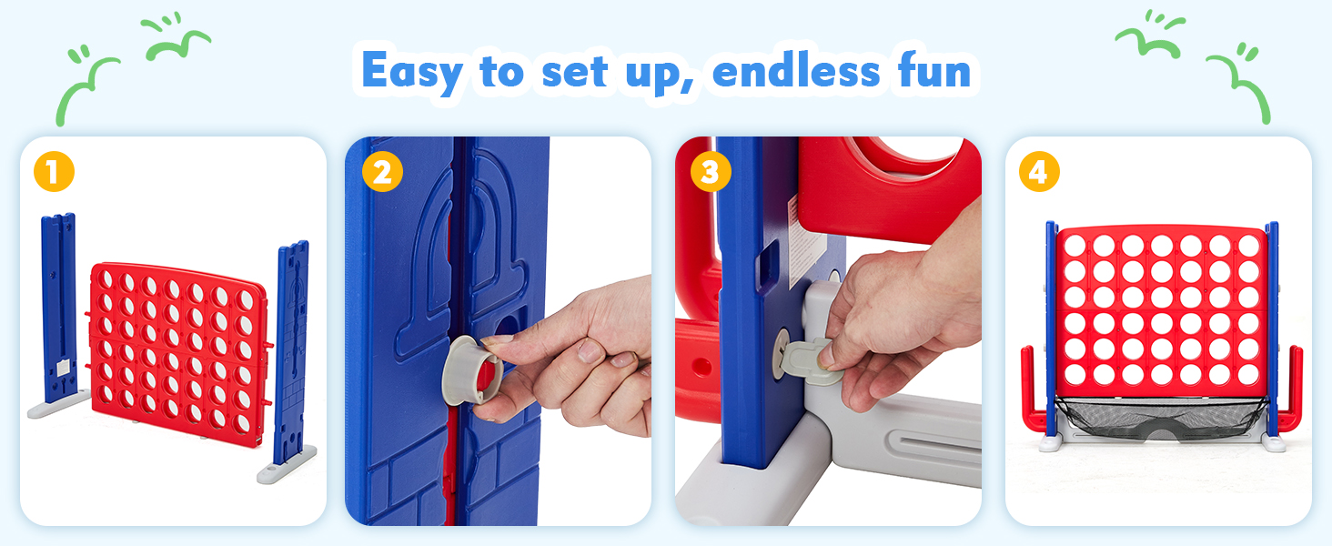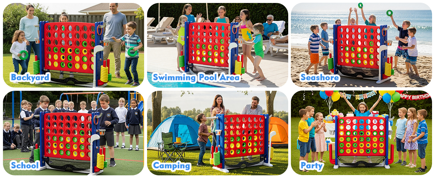 【Safe & Durable Construction】 Giant Connect 4 Game Outdoor,Made from high-quality, eco-friendly PE/PP plastic with smooth edges and no small parts. Weather-resistant and fade-proof, it ensures long-lasting safe play for everyone.