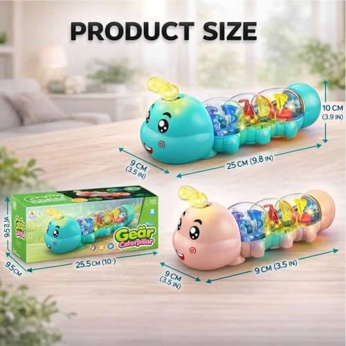 Specifications: Name: Crawling Toy, Caterpillar Design Tummy Time Toy with Light & Music Musical Light up Size: 9.7*3.75*3.75in/24.6*9.5*9.5cm Material: Plastic Color: Pink, Green