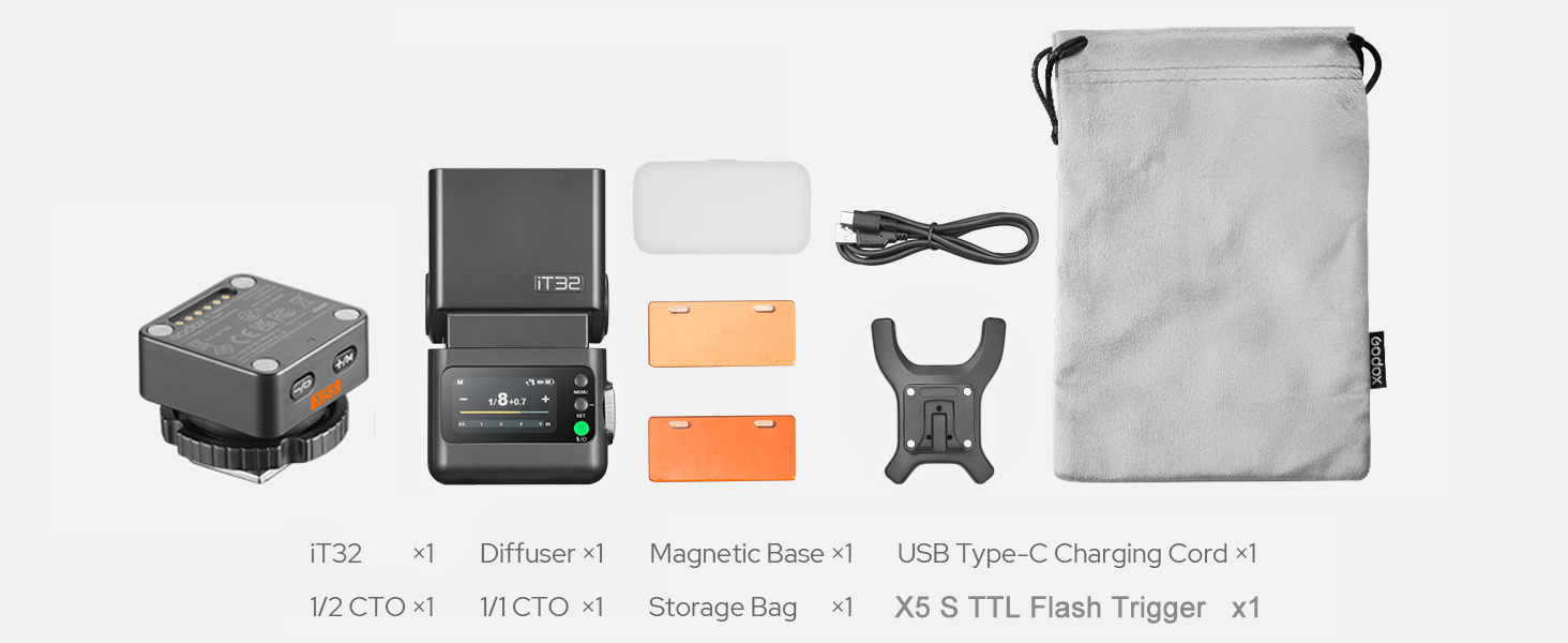 - [One System, Built for All] The iT32 & X5 offer a universal solution for photographers working across different camera systems. Its interchangeable magnetic X5 hotshoe allows instant switching between brands by simply changing the X5 version. This flexible design helps photographers focus more on creativity and less on equipment compatibility.