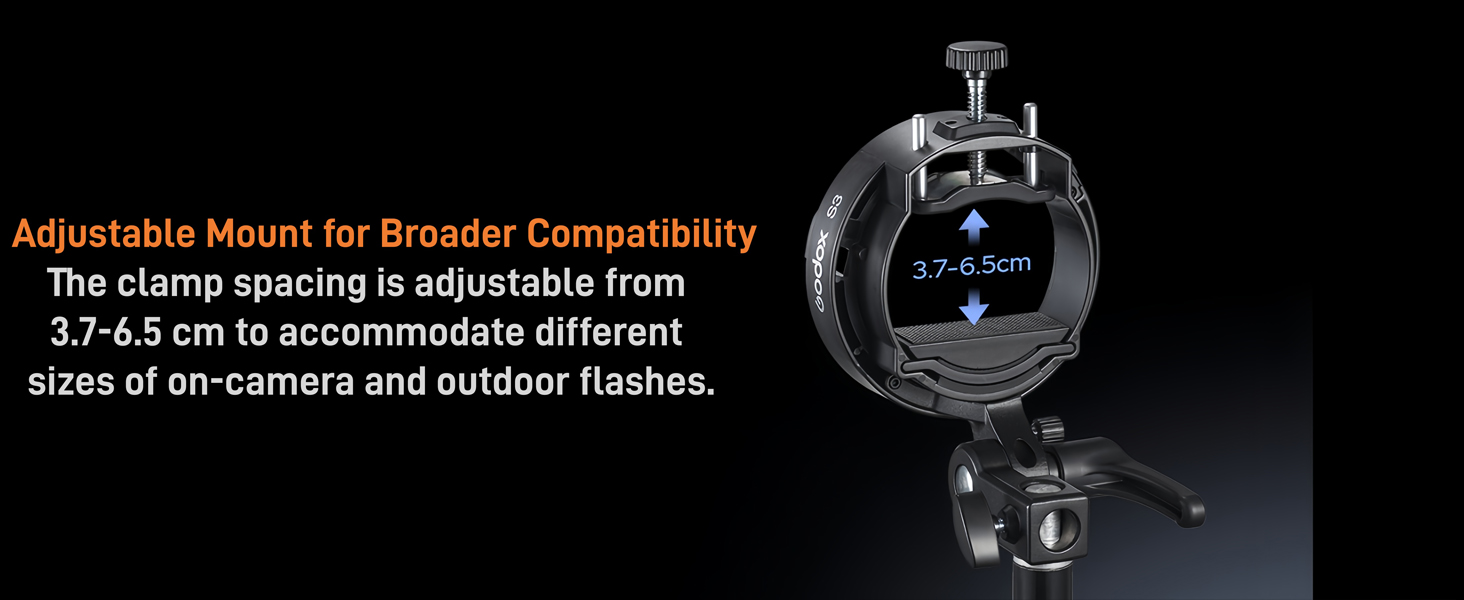- 【Wide Godox Compatibility】Securely holds a wide range of Godox flashes and strobes, including the round-head V1, V860II/V860III, TT685 series, and AD series like AD200Pro, AD300Pro, and AD400Pro.