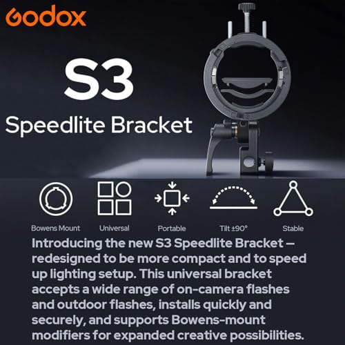 Godox S3 Speedlite Bracket, Bowens Mount Holder for Round & Square Head Flashes, Compatible with Godox AD100Pro AD200Pro AD300Pro AD400Pro V1 V100 V480 V860III TT685III TT600 TT350(S2 Upgraded)