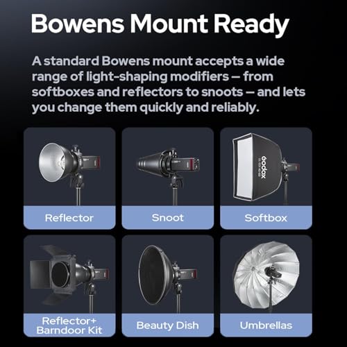 - 【Bowens Mount for Creative Modifiers】Standard Bowens mount lets you use a vast array of modifiers such as softboxes, snoots, and umbrellas to achieve professional lighting effects with your speedlite.