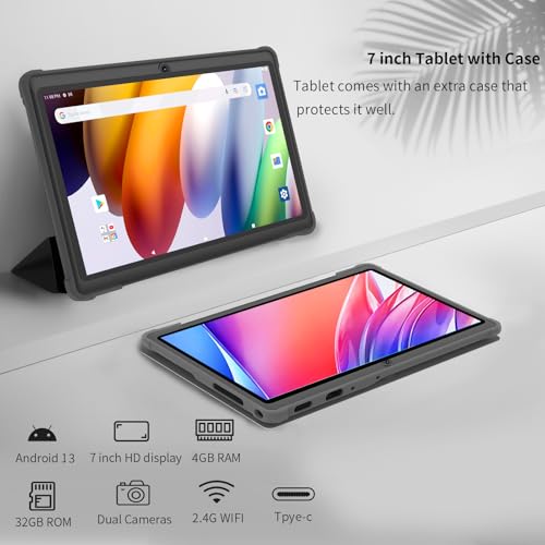GOZZGEAR Android 13 Tablets 7 inch, Parental Control,Tablet PC, Bluetooth, Dual Camera, WiFi, Portable Tablet PC with Black Case 2-Year Warranty