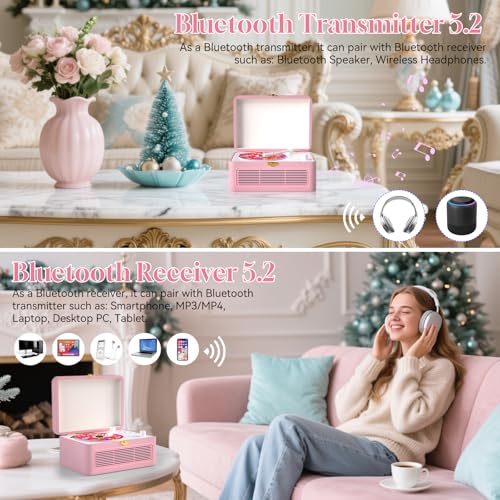 - 【Vintage CD Player with Dual Bluetooth】Equipped with advanced Bluetooth 5.0 technology, this vintage CD player supports Bluetooth transmitter and Bluetooth receiver Seamlessly connect to external Bluetooth devices in CD mode to stream your favorite music directly from your smartphone, tablet, or other Bluetooth-enabled devices. It can also be connected to headphones or external speakers via the 3.5mm AUX port to meet different audio output needs.