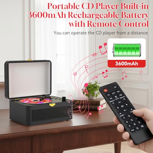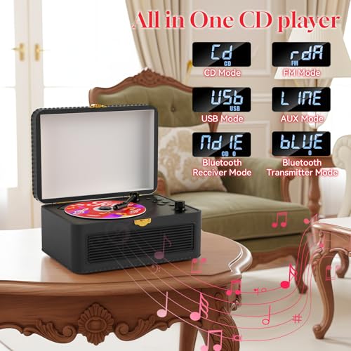 Gueray Bluetooth CD Players Vintage CD Player for Home with Remote Control. This black Retro CD player has 6 Playing Mode: