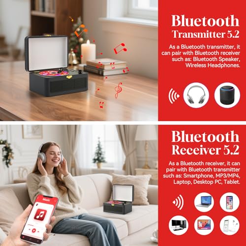 - 【Vintage CD Player with Dual Bluetooth】Equipped with advanced Bluetooth 5.0 technology, this vintage CD player supports Bluetooth transmitter and Bluetooth receiver Seamlessly connect to external Bluetooth devices in CD mode to stream your favorite music directly from your smartphone, tablet, or other Bluetooth-enabled devices. It can also be connected to headphones or external speakers via the 3.5mm AUX port to meet different audio output needs.