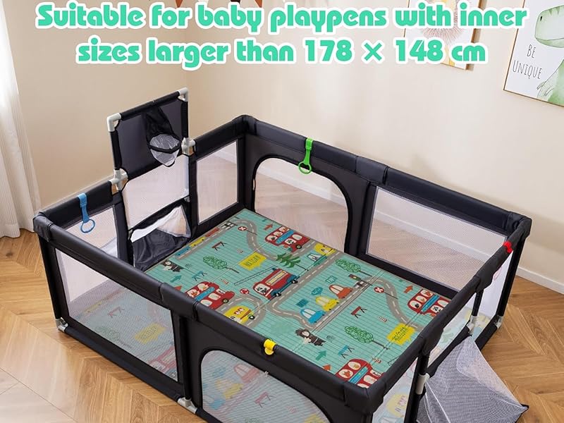 - Perfect for crawling and playing, picnic, yoga and other activities Suitable for baby playpens with inner sizes larger than 178 X 148 cm