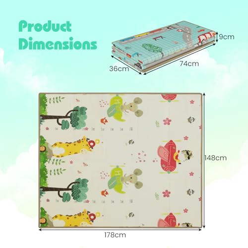 GYMAX Baby Play Mat, 178 x 148 cm Floor Mat with Double-Sided Pattern, Foldable Infant Activity Play Mats for Crawling, Playing, Yoga & Picnic
