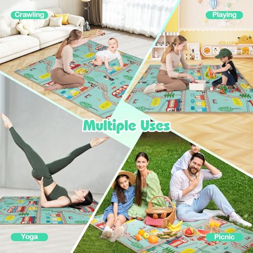 - ✔EASY FOLDING & WIDE USE- When not in use, this baby crawl mat folds effortlessly, allowing for easy transportation and space-saving storage with its lightweight design. In addition to being ideal for crawling and playing, the reversible play mat can also be used for picnics, yoga, and various other activities.
