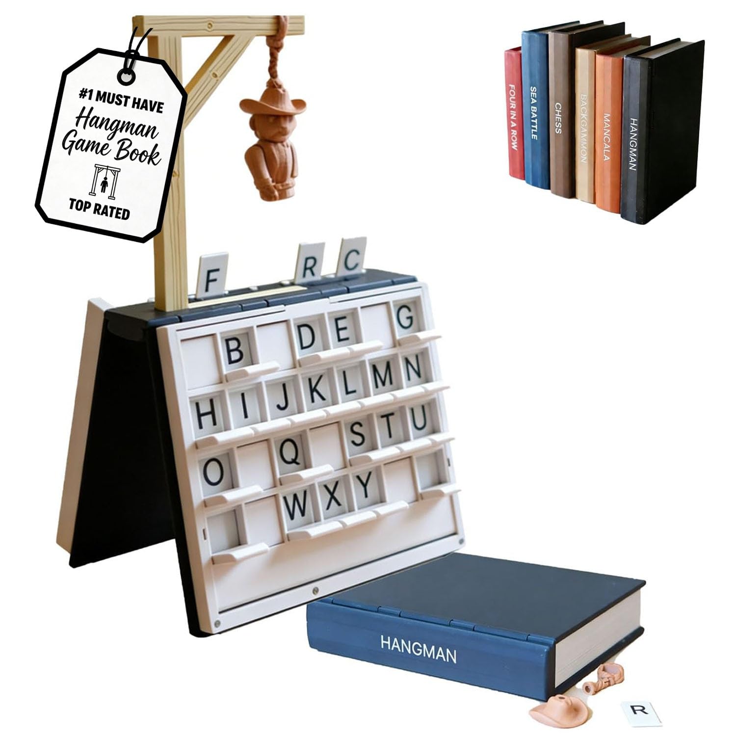 Hangman Game Book,Playbook'd – Hangman,3D Printed Magnetic Chess Set, Four in a Row, Sea Battle, Backgammon, Mancala, Portable Books Design Board Game for Adults(Hangmans)