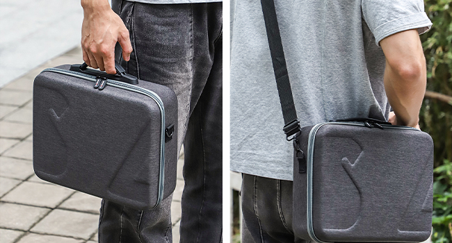 Shock resistant. The hard carrying case is made of high quality material, with shock absorbing and pressure-resistant hard shell, which effectively mitigates the impact of external forces and effectively protects your drone from scratches, bumps and impacts. It provides full protection against scratches for your device, easy to carry, store and use outdoors.