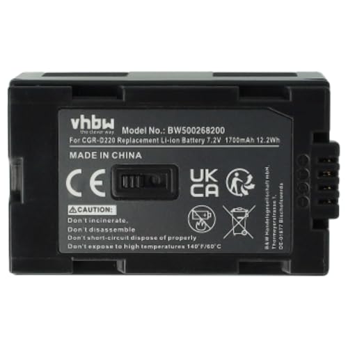 hbw 3x Replacement Battery compatible with Panasonic NV-DS15, NV-DS150, NV-DS25, NV-DS27, NV-DS28, NV-DS29 Videocamera (1700 mAh, 7.2 V, Li-ion)
