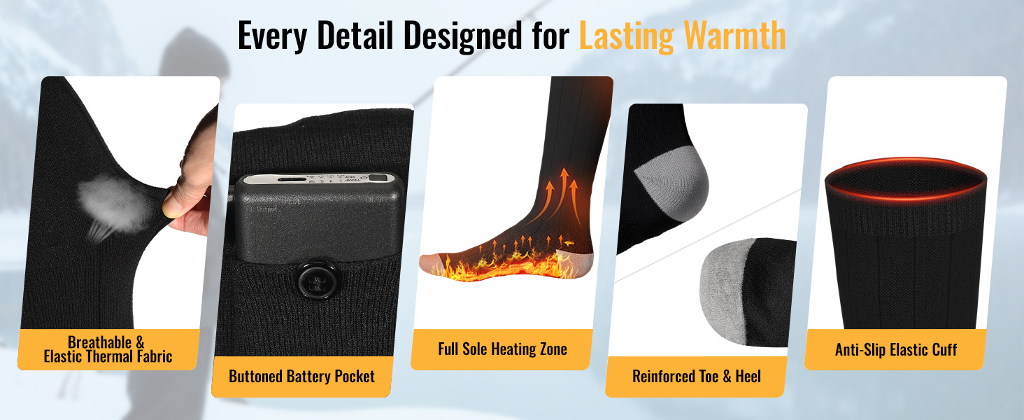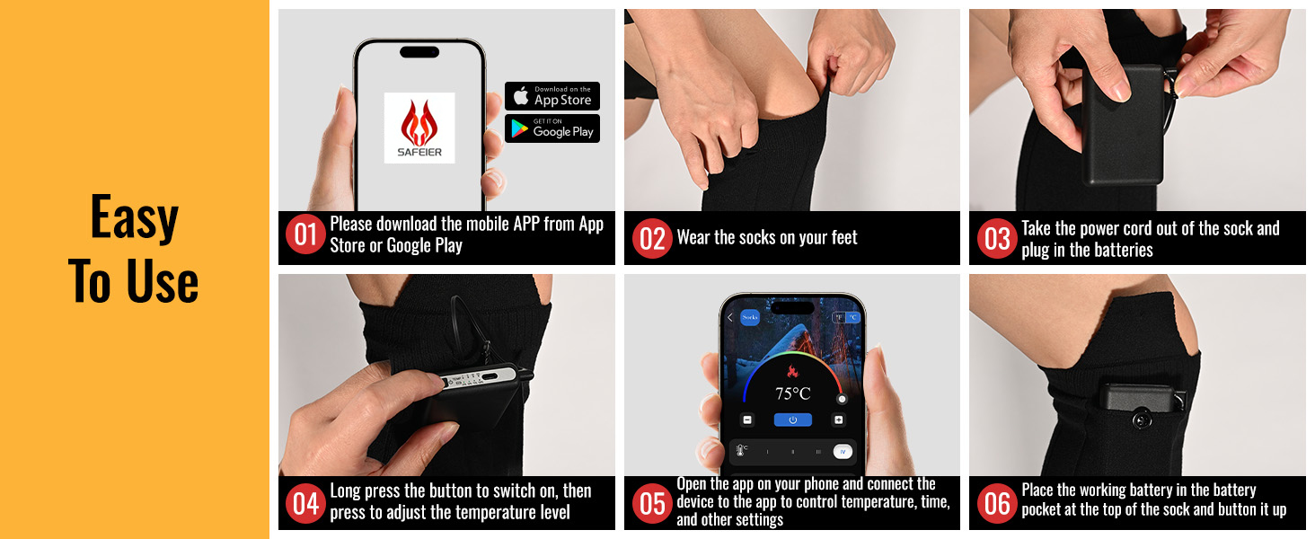 Experience warmth designed for modern outdoor life. Our heated socks combine APP + battery dual control for easier adjustments, a powerful 6000mAh battery for longer-lasting heat, and full-sole coverage that delivers consistent warmth from heel to toe. They are also machine washable(with a laundry bag)for convenient care.